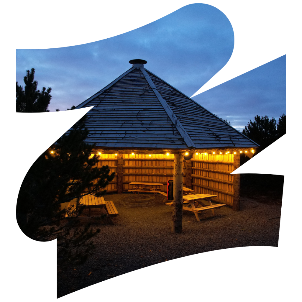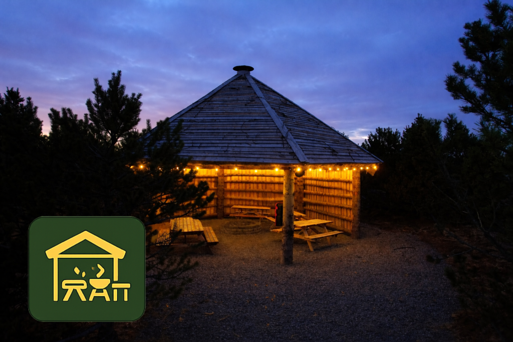 Nýtt og rúmgott grillskýli er að finna í fallega Yndisskóginum fyrir ofan tjaldsvæðið.