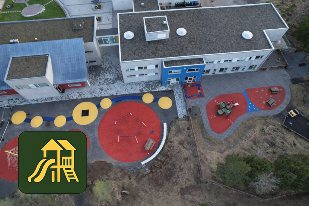 Við skólann er leiksvæði fyrir börn ásamt battavelli sem tryggir ótakmarkaða skemmtun.