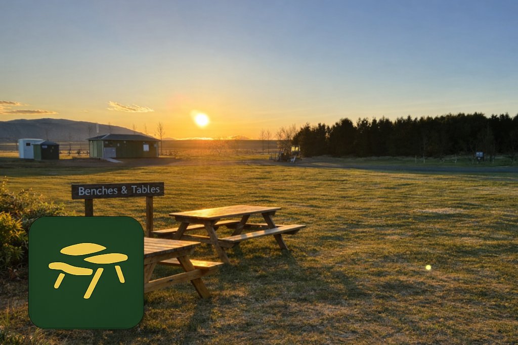 Á tjaldsvæðinu eru bekkir og borð til staðar á nokkrum stöðum sem gestir geta nýtt sér.